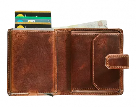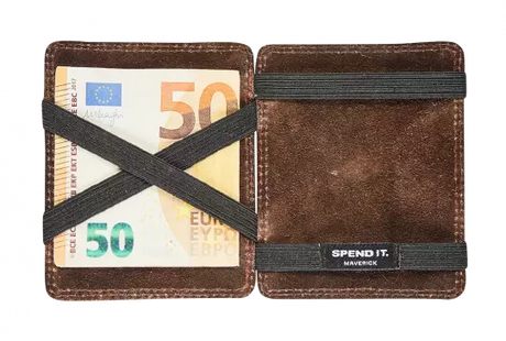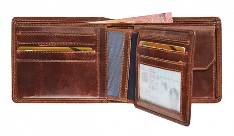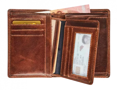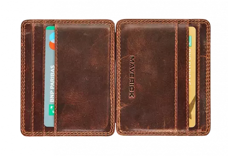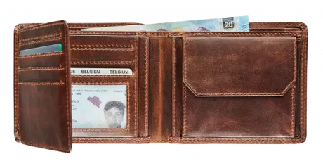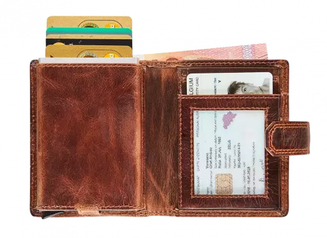 BRUIN LEDEREN PORTEFEUIILLE MET UITNEEMBARE KAARTHOUDER