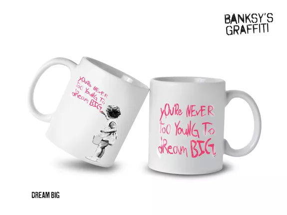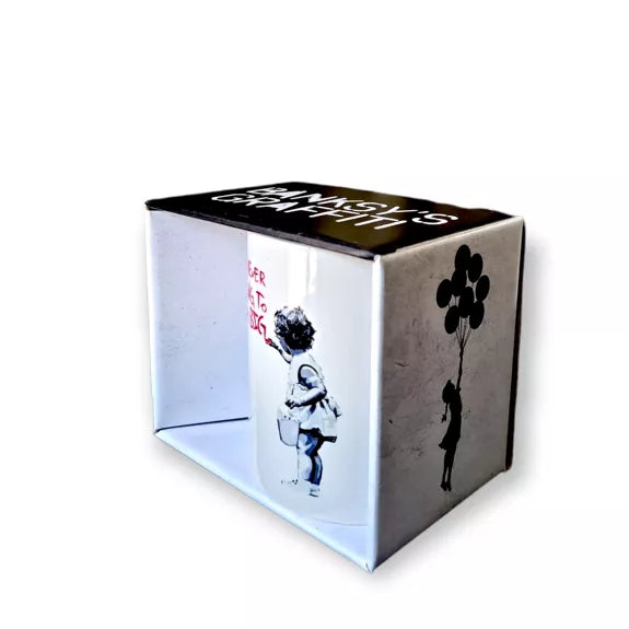 Het ontwerp is onconventioneel aan de voorkant en retro van een iconische mok gewijd aan de straatkunstenaar die beroemd is en discussieert.