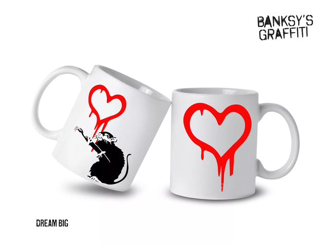 Het ontwerp is onconventioneel aan de voorkant en retro van een iconische mok gewijd aan de straatkunstenaar die beroemd is en discussieert.