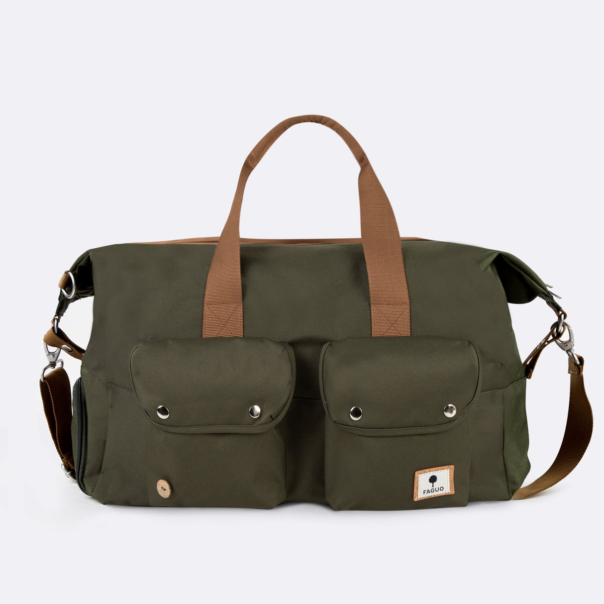 De weekendtas gemaakt van gerecycled polyester dat zodanig geweven is dat het erg lijkt op het duurzame canvas.