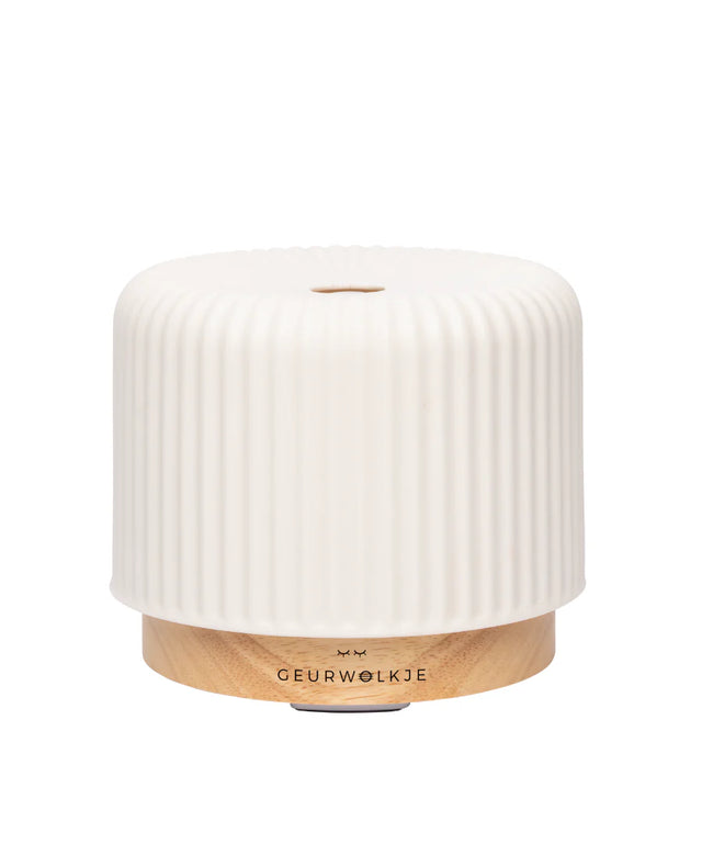 Wat deze diffuser echt bijzonder maakt, is dat hij vervaardigd is uit hoogwaardig keramiek, dat bekendstaat om zijn duurzaamheid en luxueuze uitstraling. Kwaliteit staat hier centraal. De keramische constructie geeft deze diffuser tijdloze elegantie en maakt hem tot een ware blikvanger in je huis. Aan de onderkant is de diffuser verfraaid met echt hout, wat zorgt voor een harmonieuze balans tussen materialen en een warme, rustieke uitstraling aan je interieur toevoegt.