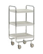 De HDRoll-trolley heeft een chromen frame en gebroken witte ladeplanken.