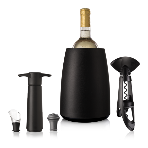 De Wijnset Elegant bevat 5 Vacu Vin producten om je wijn te openen, te koelen, te serveren en te bewaren. Het perfecte cadeau voor wijnliefhebbers van alle niveaus!