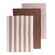 Gemaakt van 100% katoen, bevat de set een handdoek met fijne strepen, één met een gewafelde structuur en één met brede strepen.