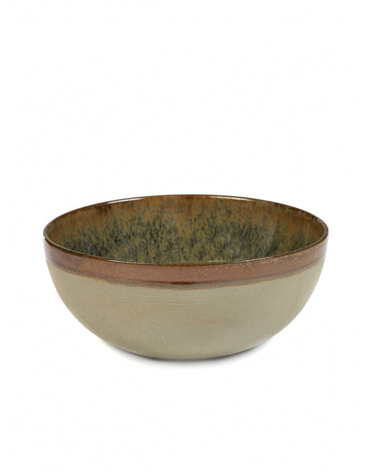 Surface by Sergio Herman for Serax is een verbluffende serie uit aardewerk met 3 verschillende uitstralingen: Camogreen, Rustybrown en Indigrey. "Ik ben van mening dat verschillende vormen en formaten allemaal hun eigen functie hebben. Dus, om de creativiteit ten volste te stimuleren, hebben we de serie zo uitgebreid mogelijk gemaakt, met kopjes, schoteltjes, borden en schalen in allerlei formaten, van laag tot hoog en van klein tot extra groot. Een mooi geserveerde maaltijd smaakt altijd beter!”