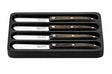 De botermessen set bestaat uit vier mesjes die zijn gemaakt van roestvrij staal en hout.
