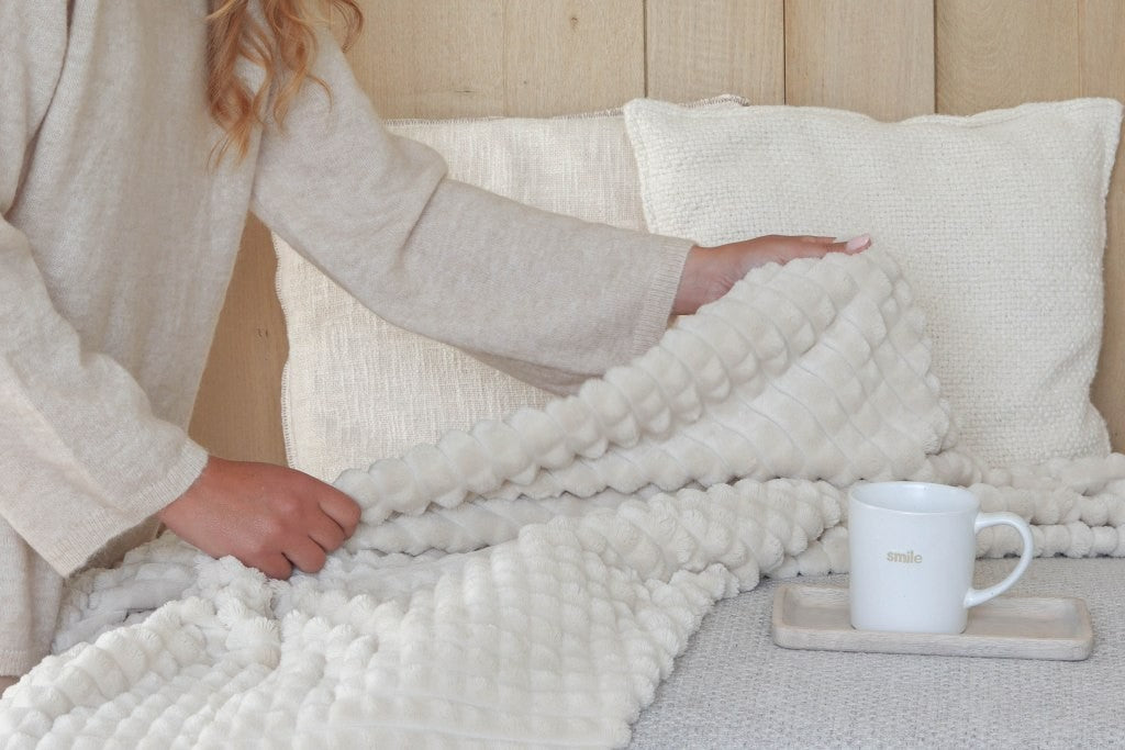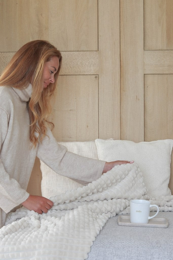 Dit superzachte en warme plaid Paula van Leeff is perfect om je op de bank in te cocoonen. Alleen of samen met iemand van wie je houdt.