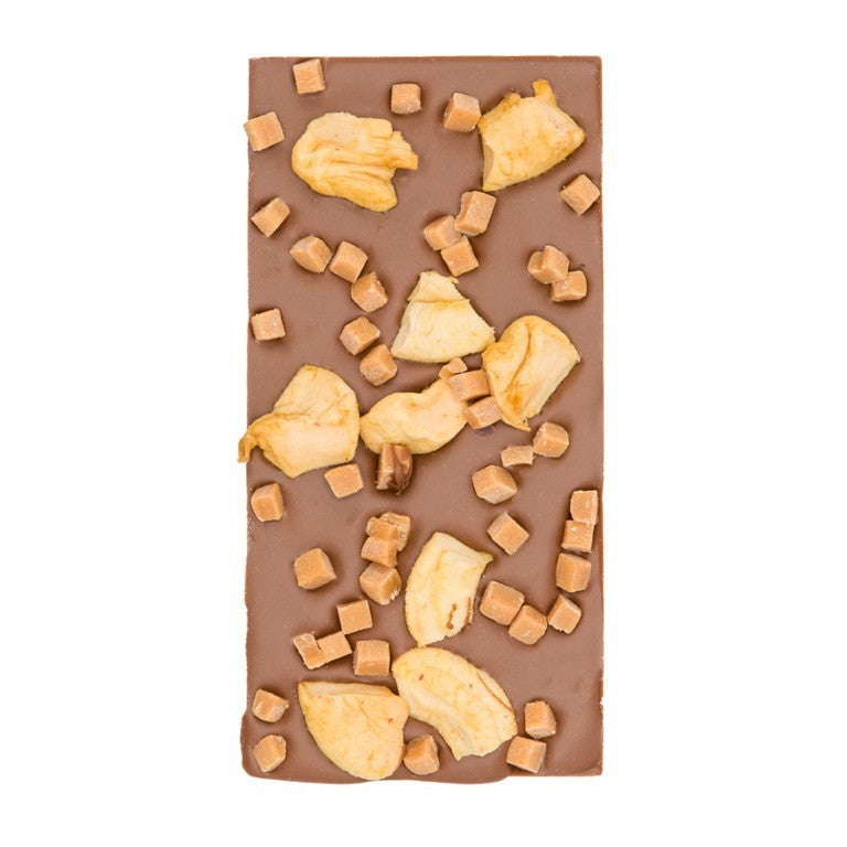 Melk Chocolade reep met gedroogde appel en Karamel fudge