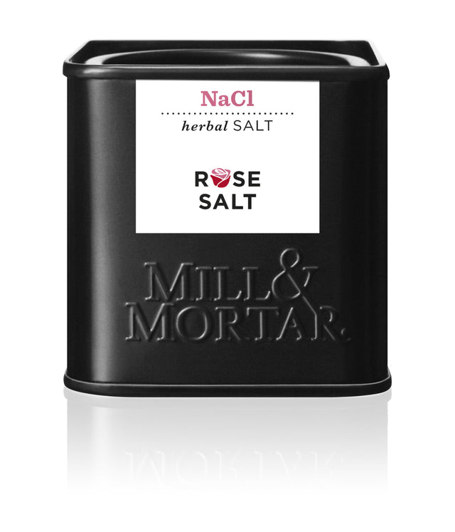 Rose Salt is een zout gedrenkt in rode wijn getint met rozemarijn. Rozen en lavendel zorgen voor een florale, zoete toets terwijl de zoete chili wat pit brengt.