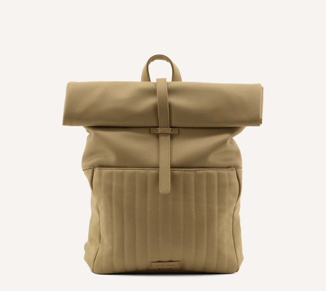 De rugtas heeft een eigentijds minimalistisch ontwerp met ruime opbergmogelijkheden en is gemaakt van stevig doch zacht en soepel vegan leer met een verfijnde structuur voor een edgy look.