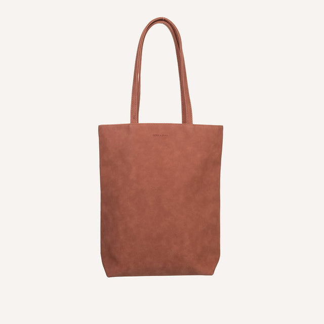 Een totebag om mee te nemen naar de markt, een vriend(in) of voor een dagje in de stad. Gemaakt van gerecycled vegan suède met een linnen voering.