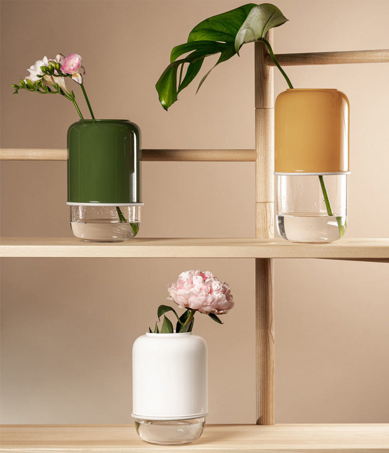 De Happy Design-beweging diende als inspiratiebron om de twee delen van Capsule te benadrukken door levendige, vrolijke kleuren te kiezen. De tweedelige vaas maakt het mogelijk om eindeloze combinaties te maken die passen bij verschillende stijlen en gelegenheden. Capsule is veel vazen in één.