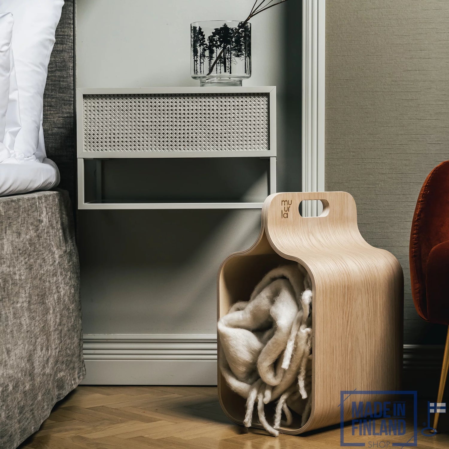 Handgemaakt in Finland, van Finse berk. Ontworpen door Ari Kostamo.