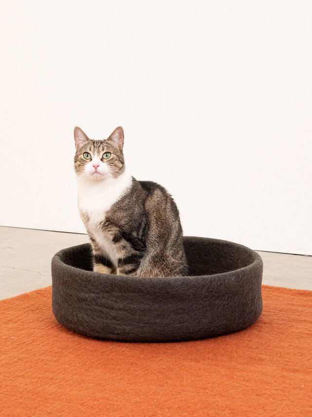 Kleine en grote tijgers voelen zich prettig en geborgen in de kattenmand, handgemaakt van zuiver scheerwol.