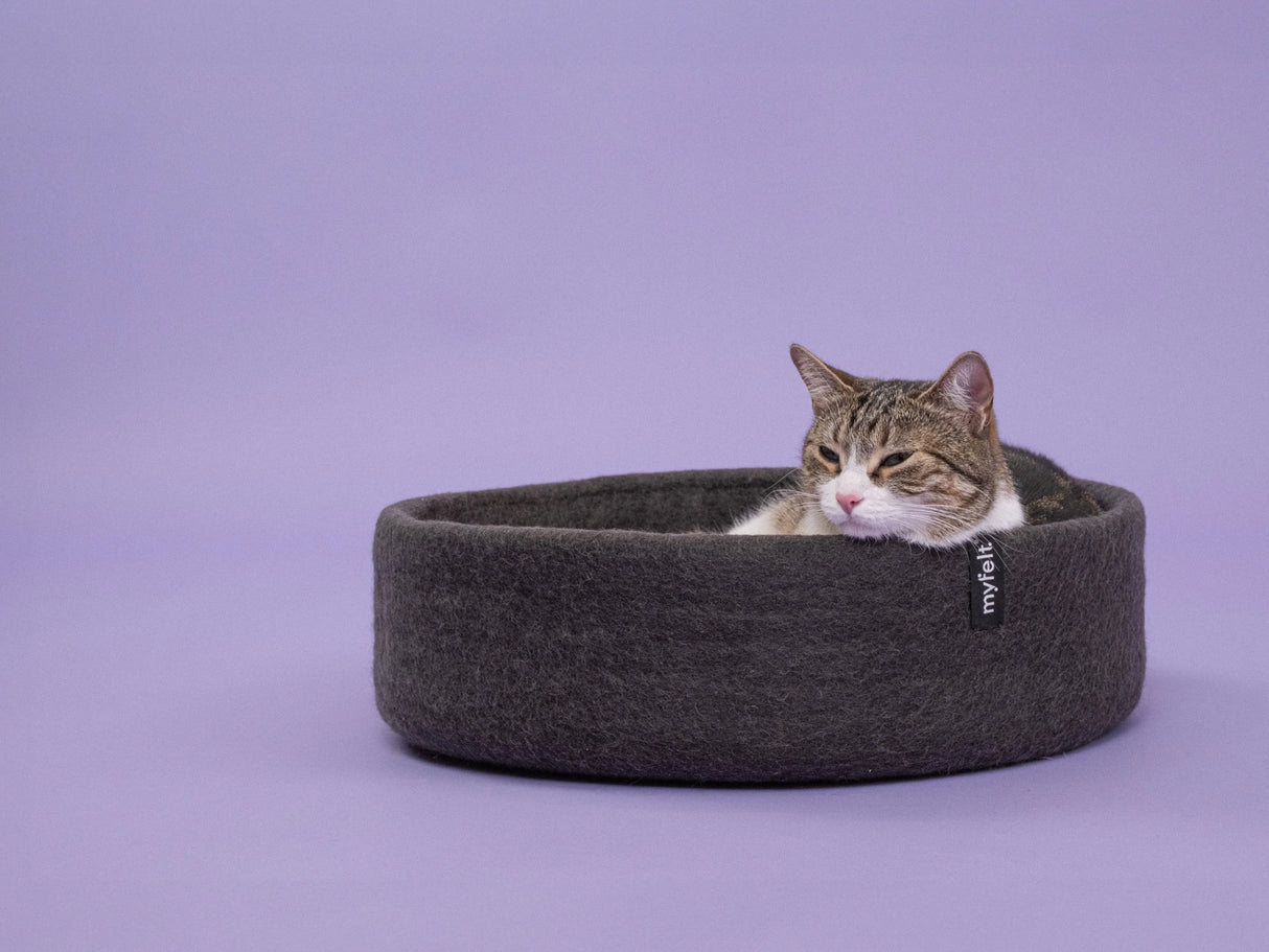 - Tijdloos ontwerp. Dankzij de ronde vorm kunnen zowel kleine als grote katten hun eigen toevluchtsoord vinden. Het stevig vervilte materiaal biedt maatvastheid op het hoogste niveau.