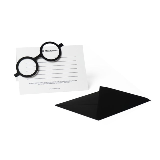 ARCHISPECS is een grappige knipoog naar de bekende architecten dresscode. Een reproductie op schaal 1:1 en gesneden in een zwart karton, net als het zwart van de beroemde architectenbril. Voorgesneden, de glazen hoeven niet in elkaar gezet te worden. Le Corbusier of Philip Johnson, het is aan jou! Het wordt geleverd met een zwarte envelop.