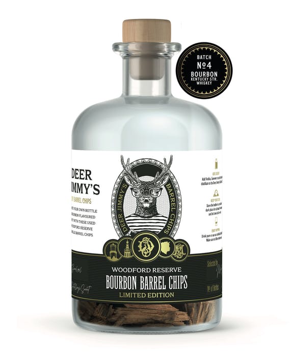 Deze Limited Edition Deer Jimmy's DIY Barrel Chips is gemaakt van een premium single Bourbon-casn (van de Woodford Reserve Distillery).