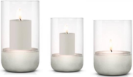 Het mooie beton in combinatie met het glas maakt de windlichten van Blomus helemaal van nu!