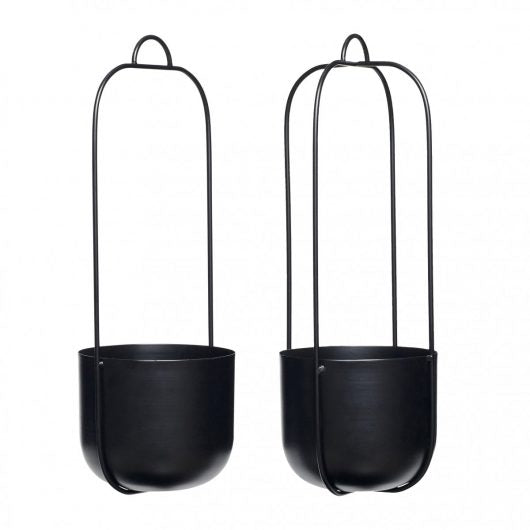 Dan zit je met de mooie zwarte metalen hangbloempotten van Hübsch aan het juiste adres.