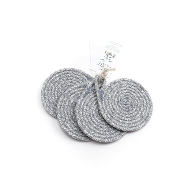 Deze leuke onderzetters van KOBA zijn ideaal om je koude én warme dranken op te zetten. De onderzetters zijn volledig Belgisch, gemaakt met katoenen koord. Elke onderzetter is uniek en gemaakt met een zigzag patroon. Ze worden verkocht in een set van 4.