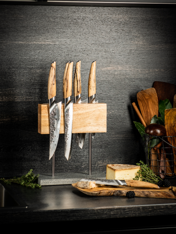 Dit stijlvolle magnetische messenblok van Style de Vie is een blikvanger op elk aanrecht of kookeiland.