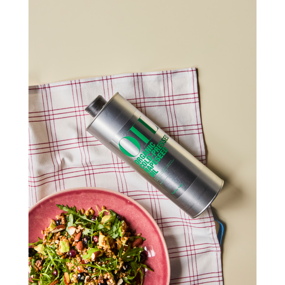 Deze koudgeperste biologische koolzaadolie verrast met een verfijnde, nootachtige smaak die je gerechten naar een hoger niveau tilt. Perfect voor huisgemaakte dressings, het dippen van vers brood of om je gebak een bijzondere twist te geven.