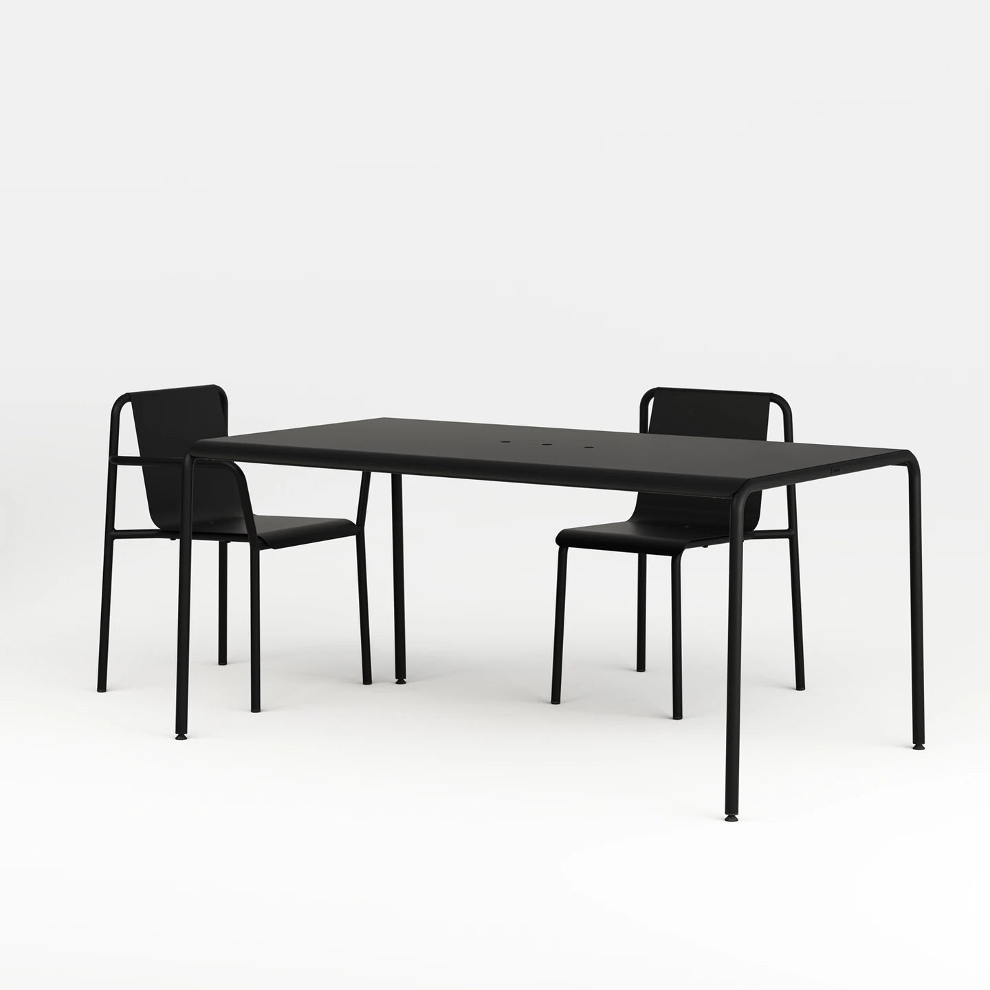 Deze stoel is geïnspireerd op de beroemde Beugel Chair van Gerrit Rietvield en gemaakt van gevouwen plaatstaal, het iconische materiaal van Tiptoe, en heeft een elegante ronding die doet denken aan een vloeiende drapering en een luchtig silhouet. De geperforeerde zitting zorgt voor een grafietaccent en vergemakkelijkt de waterafvoer.