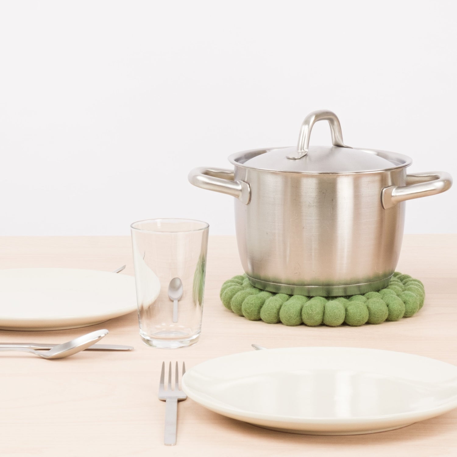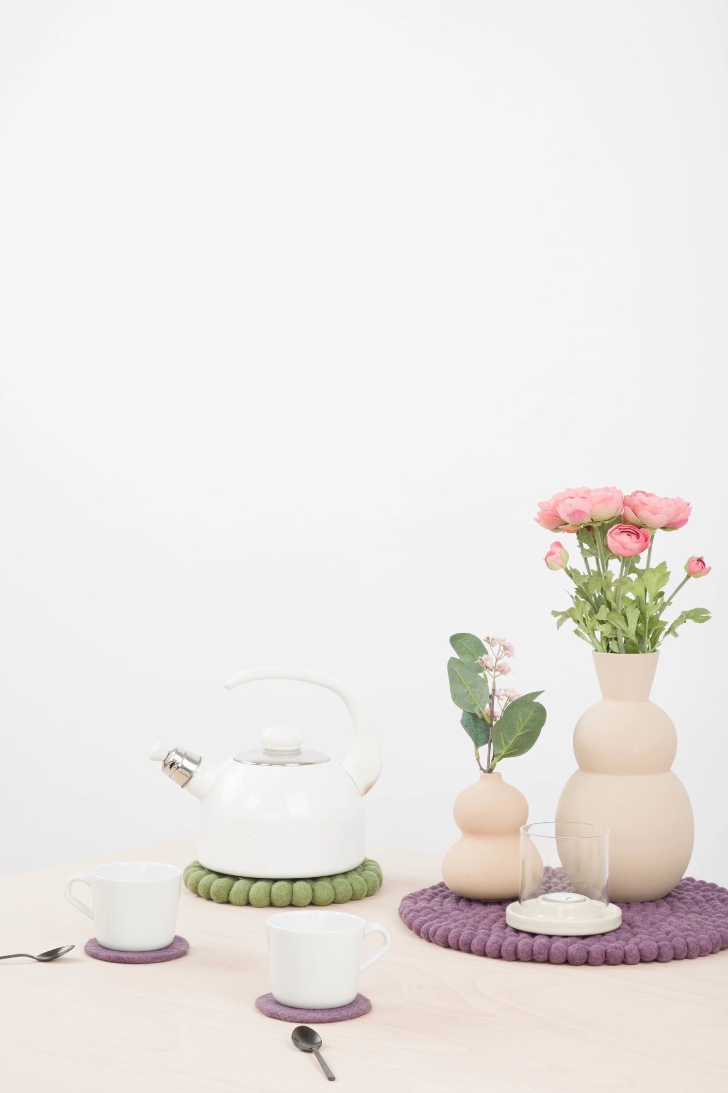 De ronde potonderzetter KASPAR (20 cm) van zuiver scheerwol beschermt niet alleen gevoelige oppervlakken, maar zorgt dankzij het klassieke design ook voor een elegante en tijdloze uitstraling.
