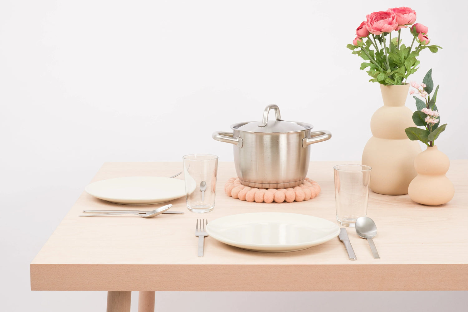 De ronde potonderzetter MERLE (20 cm) van zuiver scheerwol beschermt niet alleen gevoelige oppervlakken, maar zorgt dankzij het klassieke design ook voor een elegante en tijdloze uitstraling.