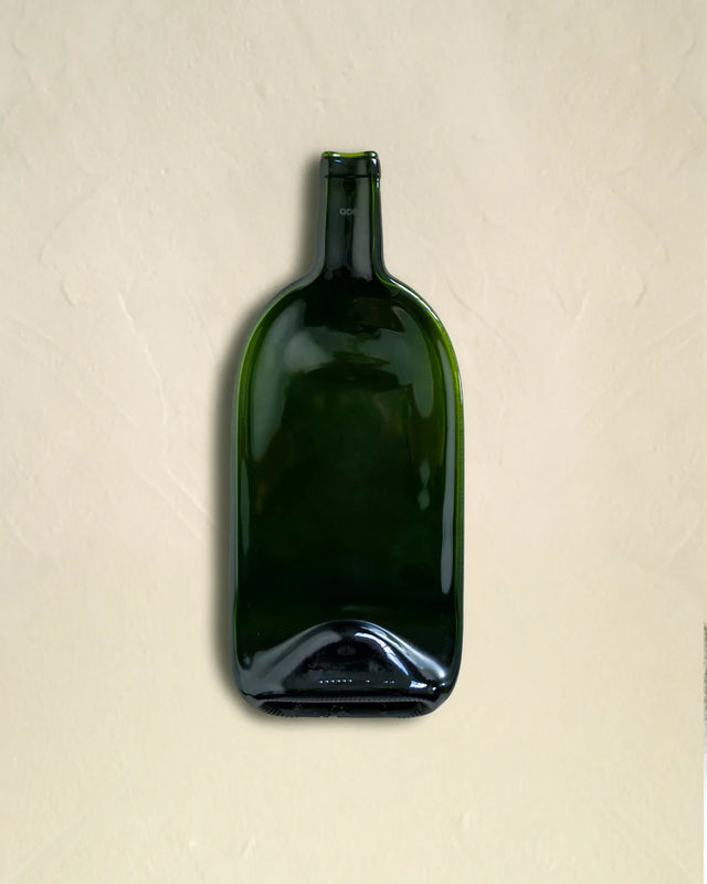 Elk stuk komt voort uit een fles die wordt verzameld en vervolgens thermogevormd is. Door te bakken in onze traagheidsoven vervormt de hitte het materiaal om de fles een nieuwe vorm en functie te geven.