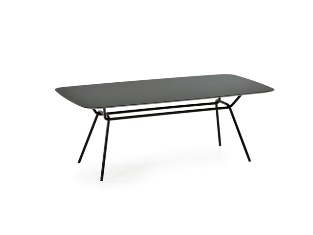 De STRAIN tafel is een eettafel waarvan de verweven stalen buizen een elegante uitvalsbasis voor het dunne tafelblad vormen.
