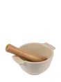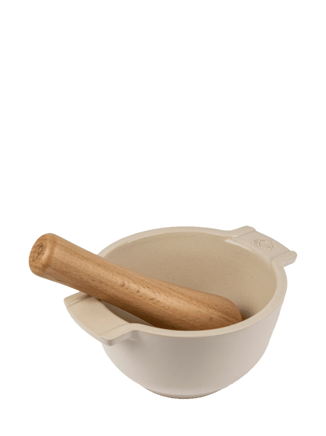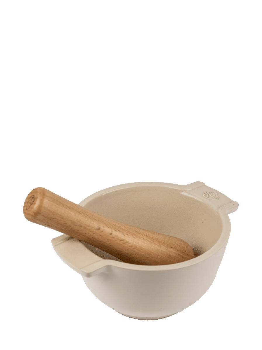 Deze set van Franse makelij bevat een vijzel van hoogwaardig keramiek, voor maximale duurzaamheid, en een stevige stamper van beukenhout. De vijzel is stabiel en ligt goed in de hand. Het ruwe glazuur aan de binnenkant zorgt ervoor dat ingrediënten zich goed hechten en voorkomt vlekken en geurtjes. De stamper van beukenhout zorgt voor een comfortabele en efficiënte grip.