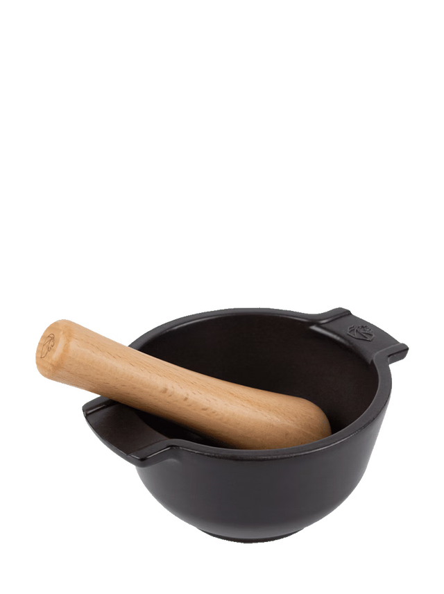 Maak kennis met onze vijzel en stamper – het perfecte duo om specerijen, kruiden en zaden fijn te stampen, te malen en te mengen.