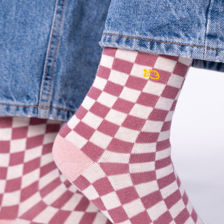 VROUWENSOKKEN - CHECKED PINK & ECRU