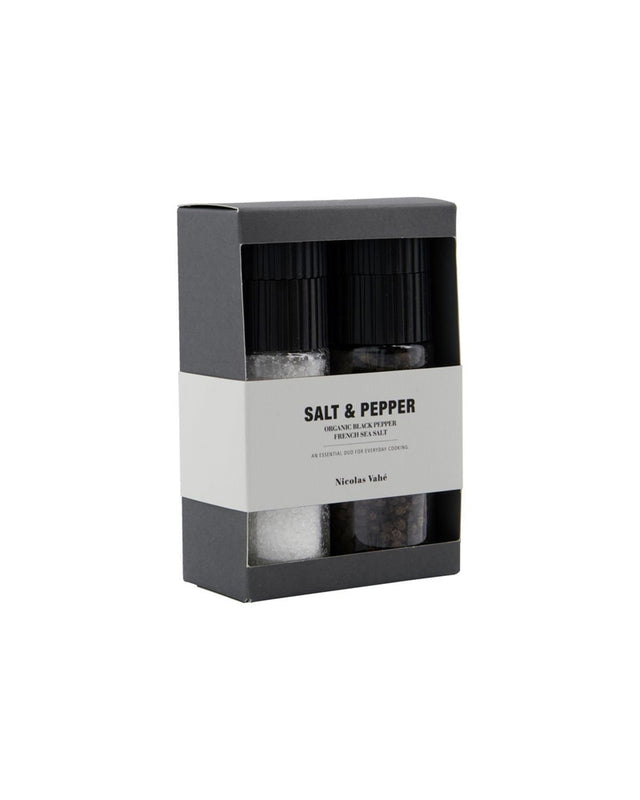 Bevat de volgende ingrediënten: Sea salt & Organic black pepper gift boxbiologische zwarte peper*, frans zeezout.* = Organic.