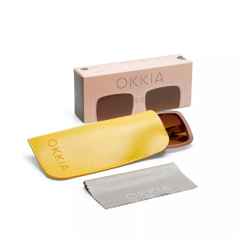 De Okkia bril komt in een geschenkdoos, met daarin een beschermhoesje en poetsdoekje.