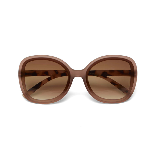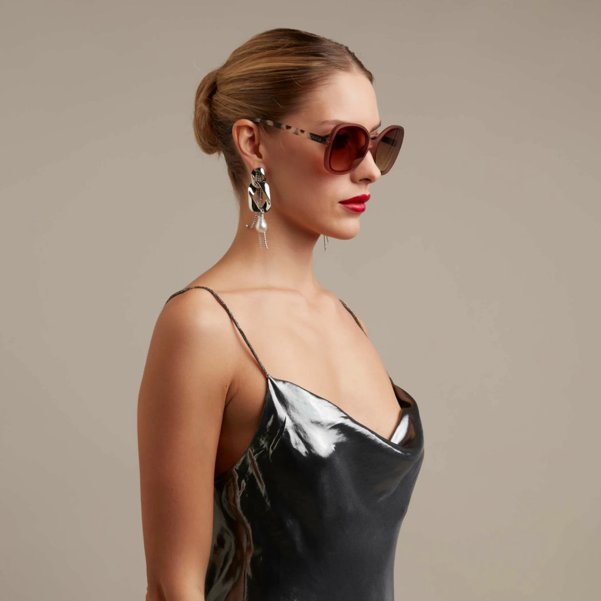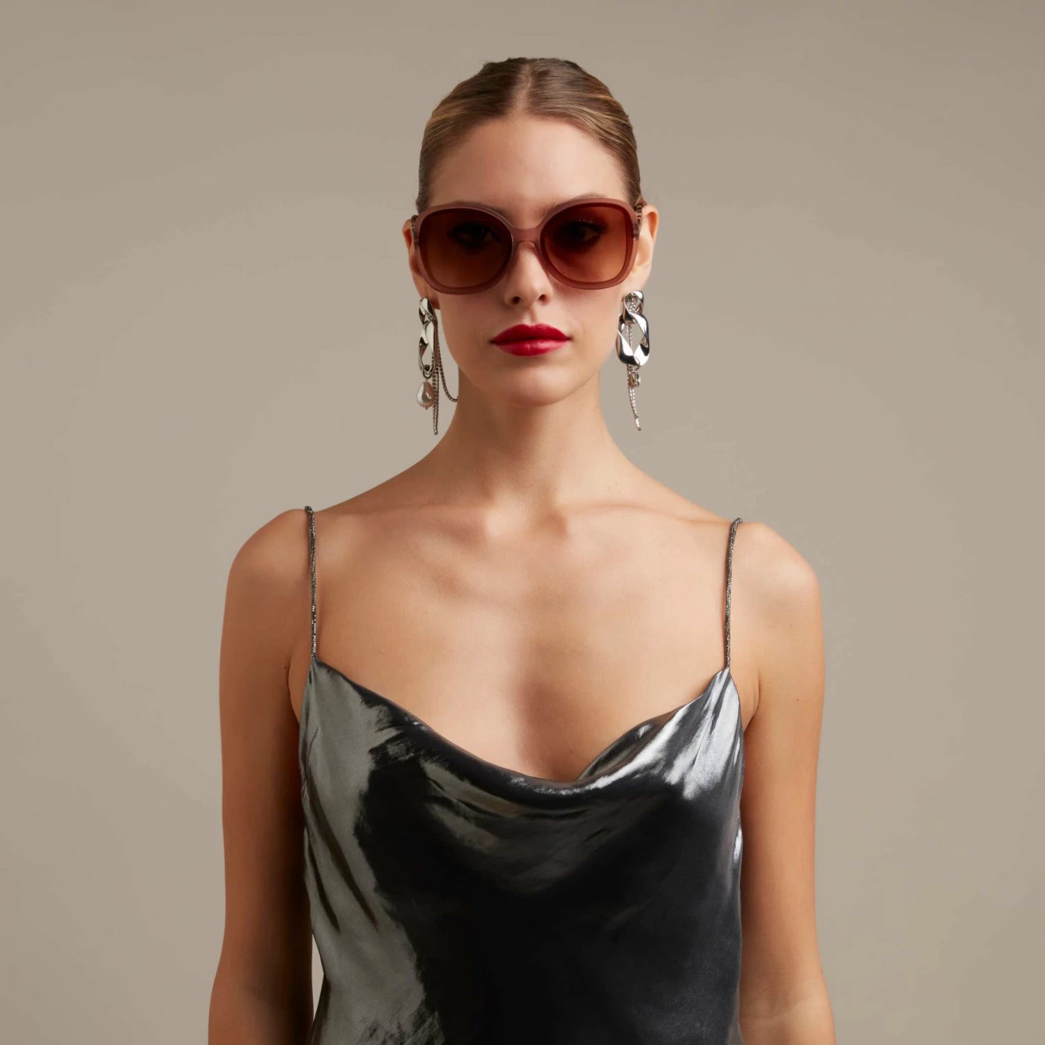 ANNA is een voorgemonteerde vlinderzonnebril met een zacht aanvoelend frame en overlappende lenzen.