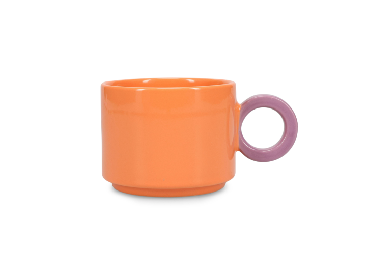 Fleur je koffieochtenden op met de 28cl oranje/paarse mok uit de Lou-collectie. Perfect stapelbaar en een stijlvolle blikvanger in elke keuken, dit glanzende juweeltje voegt een vleugje plezier toe aan je dagelijkse brouwsels!