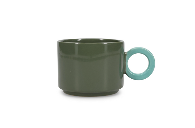 Fleur je koffieochtenden op met de 28cl groen/blauwe mok uit de Lou-collectie. Perfect stapelbaar en een stijlvolle blikvanger in elke keuken, dit glanzende juweeltje voegt een vleugje plezier toe aan je dagelijkse brouwsels!