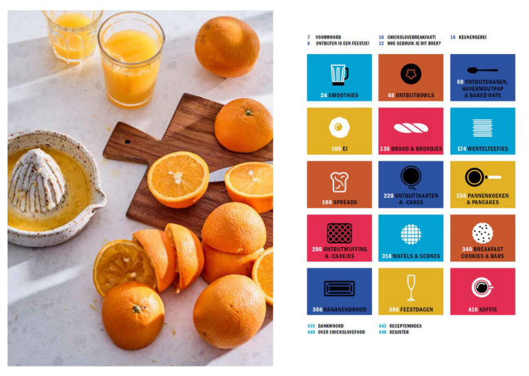 In Ontbijtbijbel van Nina en Elise van Chickslovefood vind je meer dan 200 ontbijtrecepten. Van smeuïge scrambled eggs, een gekookt ei met kaassoldaatjes tot shakshuka, en van havermoutpap, frozen yoghurt met chocoladegranola tot gezonde wafels met maar twee ingrediënten. Laat de oven het werk doen en maak breakfastcookies met pistache, bananencake of een ontbijttaart met rood fruit. Of bak vers brood met spreads als hummus, tonijnsalade of zelfgemaakte aardbeienjam.