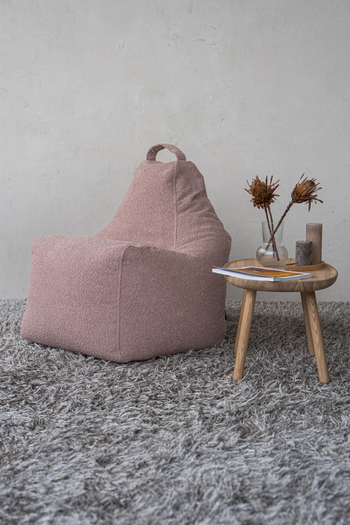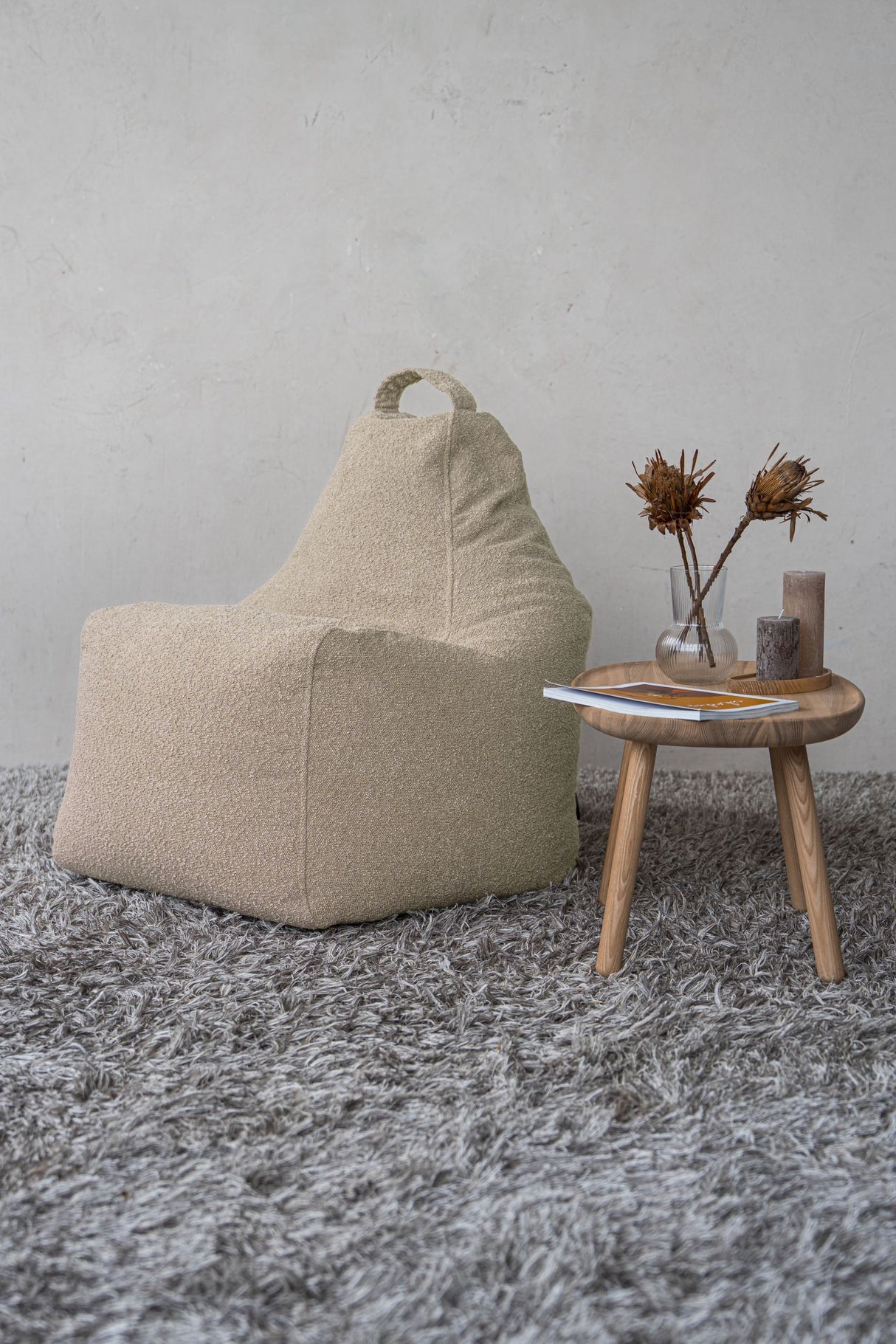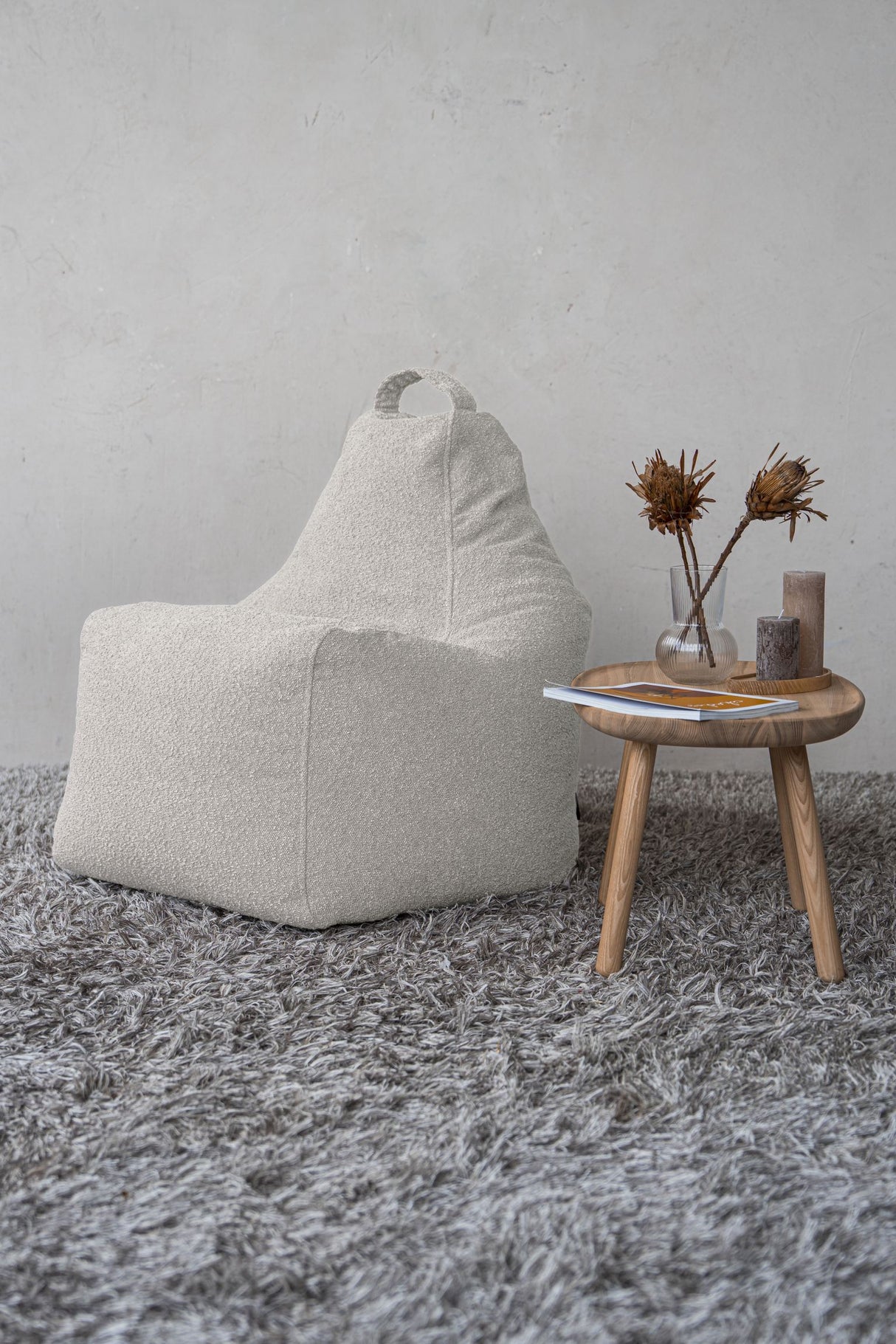 De zitzakken van deze zachte BOUCLE STOF vullen de kamer met gezelligheid en zien er uniek uit!
