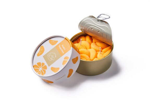 De gepelde mandarijnkaars ruikt naar je beste vakantieherinneringen en ziet er zo echt uit dat je er misschien een hap van wilt nemen.