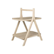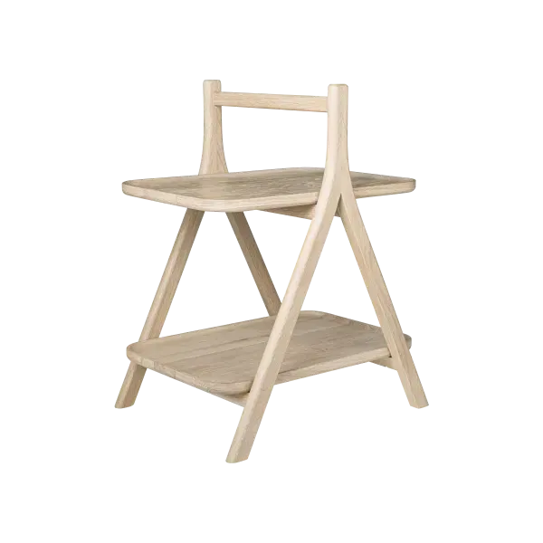 De ovale handgreep en de poten met dezelfde radius vormen een open 'A-frame', terwijl de twee planken een zwevend effect creëren.