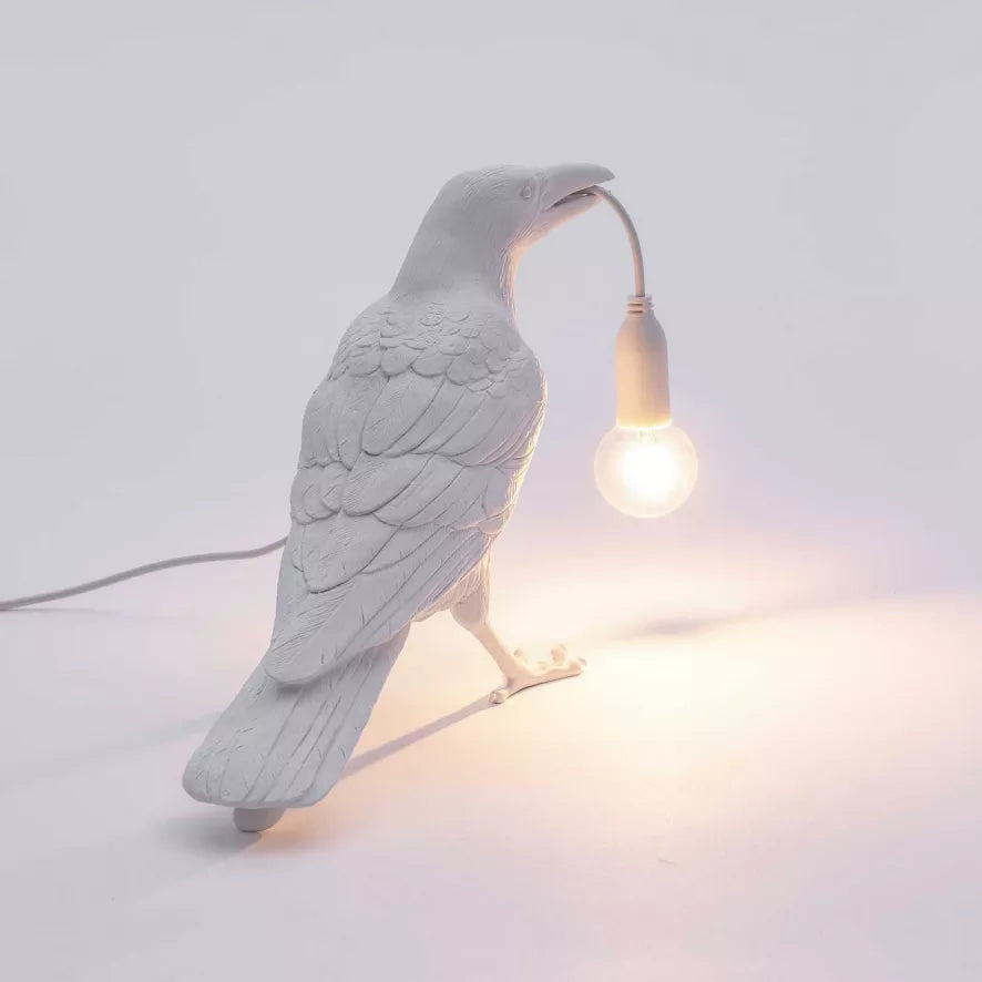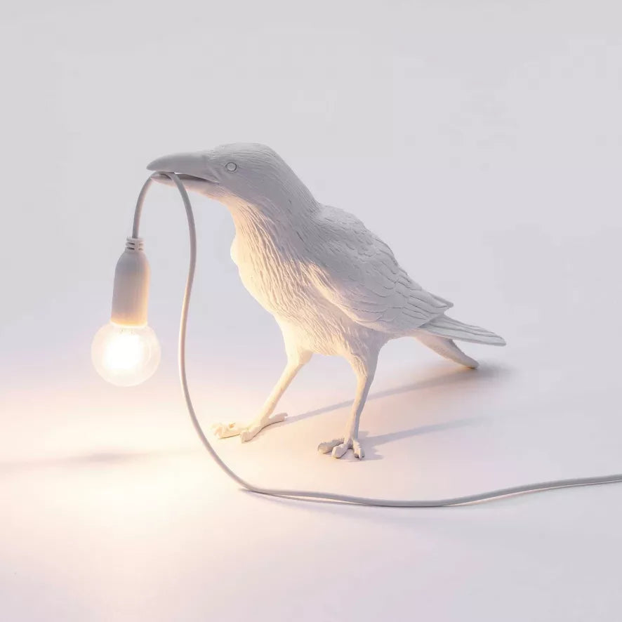 Met de Bird waiting tafellamp van Seletti krijg je hulp van een vogeltje om jouw kamer te verlichten.