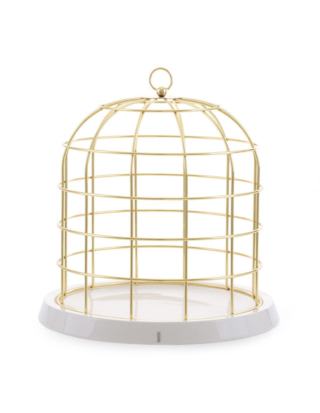 De SELETTI twitable gouden metalen vogelkooi met porseleinen bodem is een accessoire ontworpen door Alessandro Dubini. Seletti staat gekend voor het zorgen voor een speelse meerwaarde in uw interieur, dit is ook zeker bij dit product het geval.