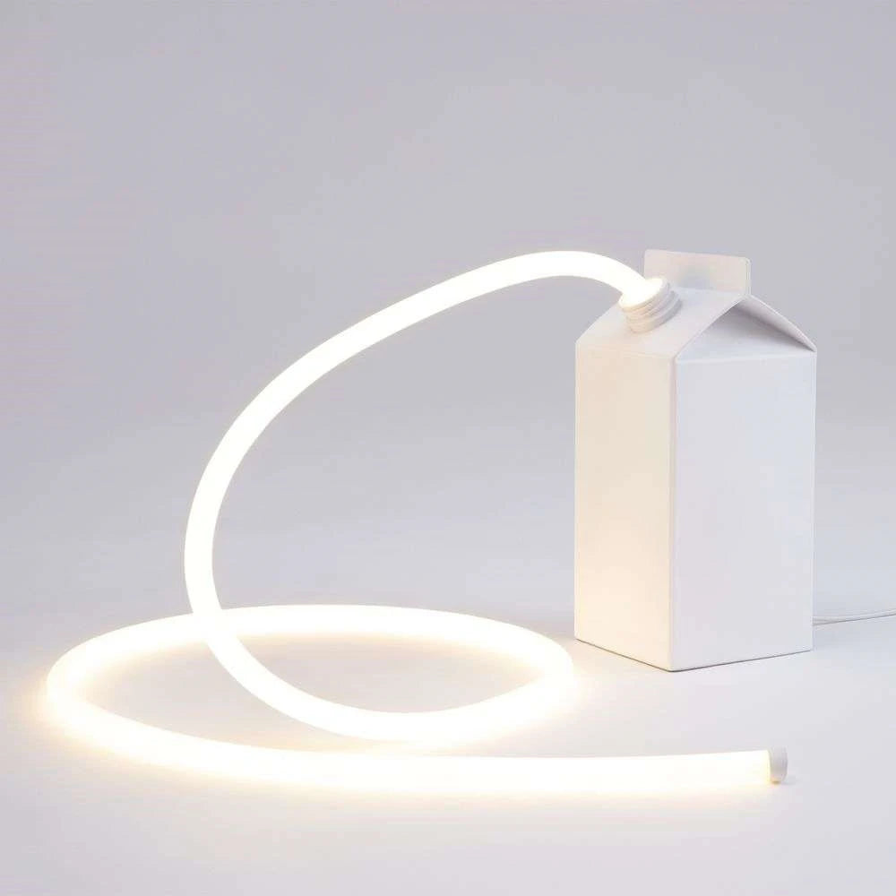 Daily Glow Milk Tafellamp is een andere innovatieve poging van Seletti om alledaagse voorwerpen opnieuw te verbeelden als interieurontwerp. Met zijn collectie Daily Glow tafellampen heeft ontwerper Alessandro Zambelli een reeks alledaagse voorwerpen - waaronder het melkpak - samengesteld en ze getransformeerd tot verbluffende, decoratieve creaties. Het licht van Milk staat garant voor een geweldige sfeer.