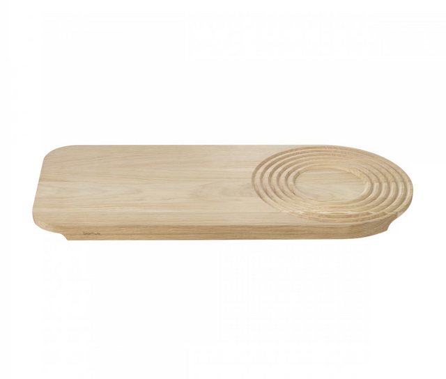 Net zo vakkundig als bij de vorige PALUA set, die bestaat uit twee eikenhouten planken die doen denken aan etageres, neemt studiomeiid met de nieuwe ZEN planken eenvoudige, geometrische vormen over en geeft de objecten een duidelijke en feitelijke uitdrukking. ZEN is aan beide zijden te gebruiken en combineert zo de functie van dienblad en broodsnijplank in één: bij het snijden van brood en broodjes worden de kruimels in de groeven opgevangen. Eenmaal omgedraaid heeft het dienblad een iets opstaande rand, wat de functie van een elegant dienblad onderstreept.