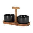 De Bits & Bites serveerschaaltjes zijn ideaal bij het serveren van lekkere snacks en dips. Deze set bestaat uit een acaciahouten plankje met een handig handvat en twee keramieken schaaltjes. Door de inkepingen in het plankje blijven de schaaltjes goed op hun plek en kunnen deze niet verschuiven tijdens het optillen van het dienblad.