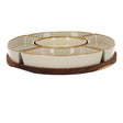 Met dit extra grote dienblad wordt ieder feestje een succes. Het ronde dienblad van acaciahout is voorzien van vijf keramieken bakjes, die gebruikt kunnen worden voor het serveren van snacks en dips. Door de inkepingen in het plankje blijven de schaaltjes goed op hun plek en kunnen deze niet verschuiven tijdens het optillen van het dienblad.