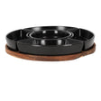 Met dit extra grote dienblad wordt ieder feestje een succes. Het ronde dienblad van acaciahout is voorzien van vijf keramieken bakjes, die gebruikt kunnen worden voor het serveren van snacks en dips. Door de inkepingen in het plankje blijven de schaaltjes goed op hun plek en kunnen deze niet verschuiven tijdens het optillen van het dienblad.